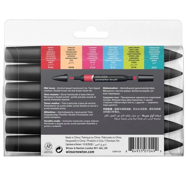 L’assortiment de feutres à alcool BrushMarker Winsor & Newton est composé de 6 feutres à alcool double pointe dans des Tons moyens, parfaits pour les dessinateurs, les scrappeuses et les étudiants en Beaux-Arts. Comme le Copic ou le Promarker, les feutres BrushMarker Tons moyens vous faciliteront la colorisation de tous vos dessins.